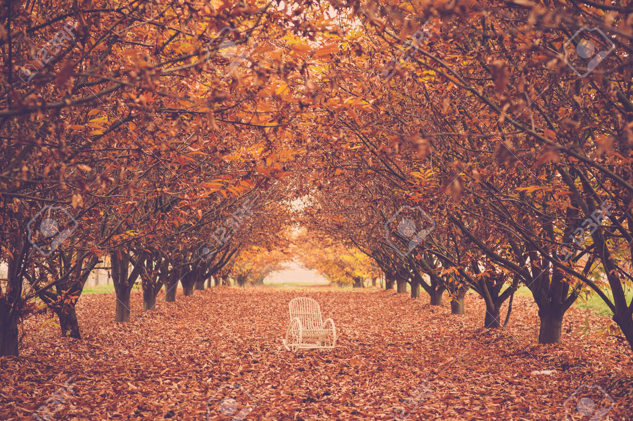 Autumn Sad Concept With A White Chair In The Middle Of The Red Stock Photo Picture And Royalty Free Image Image 114001479
